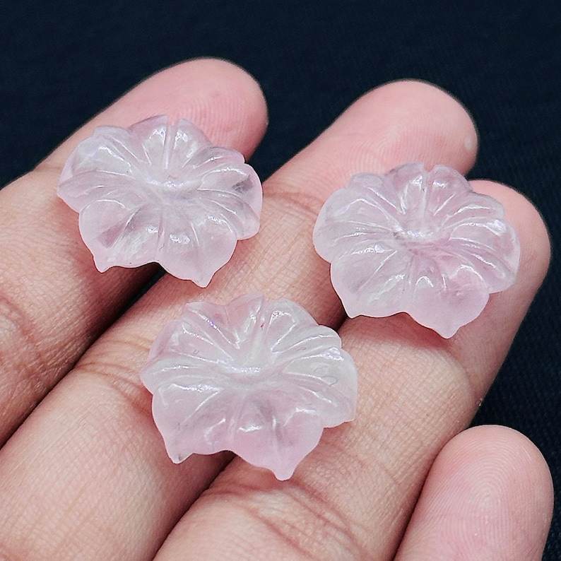 Natural Rose Quartz Flower Shape Carved Gemstone 17mm Pink Crystal Flower Beads Hand Carved Gemstone Charms for Jewelry
