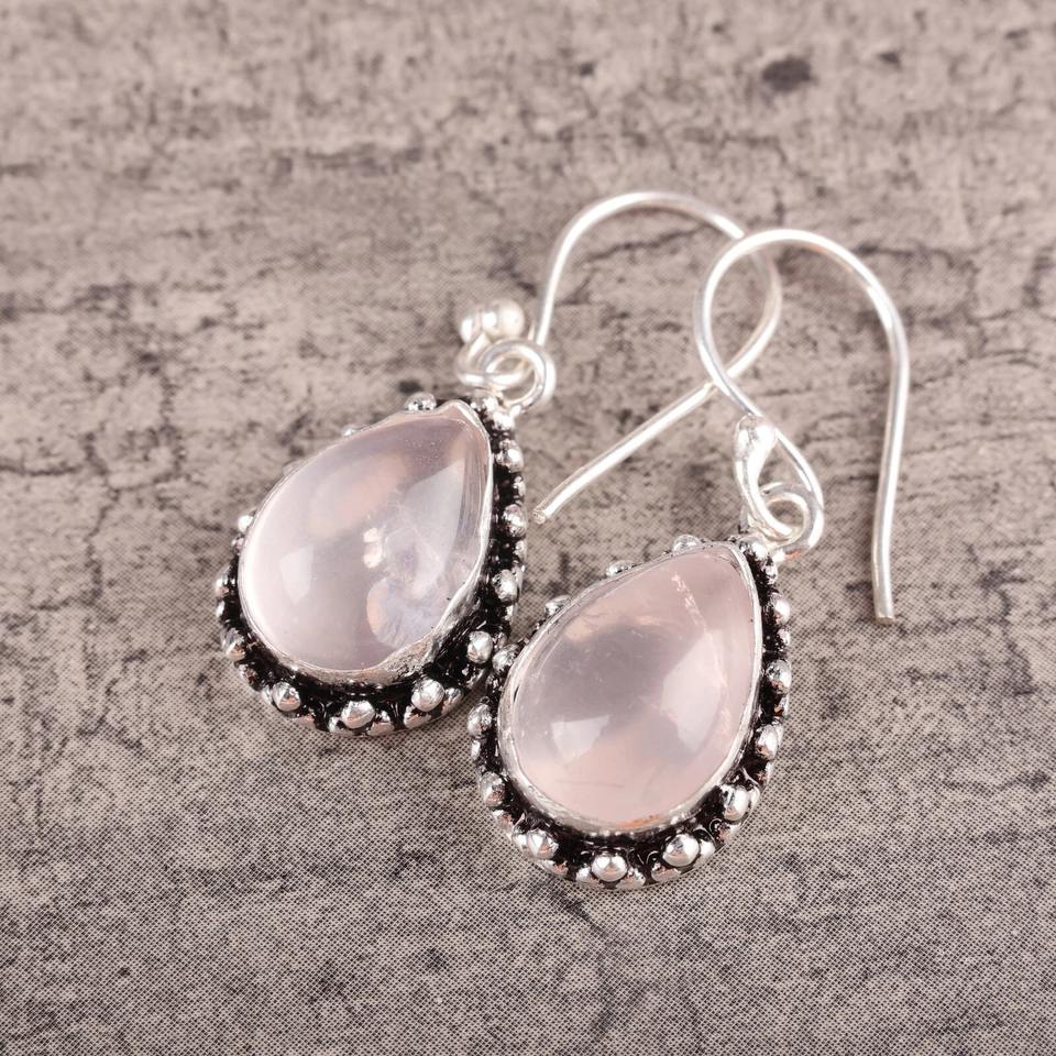 Natural Rose Quartz Gemstone Gold Plated 925 Sterling Silver Drop Earrings for Women Romantic Handmade Party Gift Jewelry