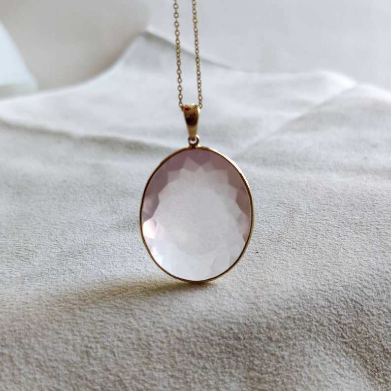 Natural Rose Quartz Oval Cut 14k Gold Pendant 22x28mm Fine Fashion Gold Jewelry for Women Wholesale Jewelry Manufacturing