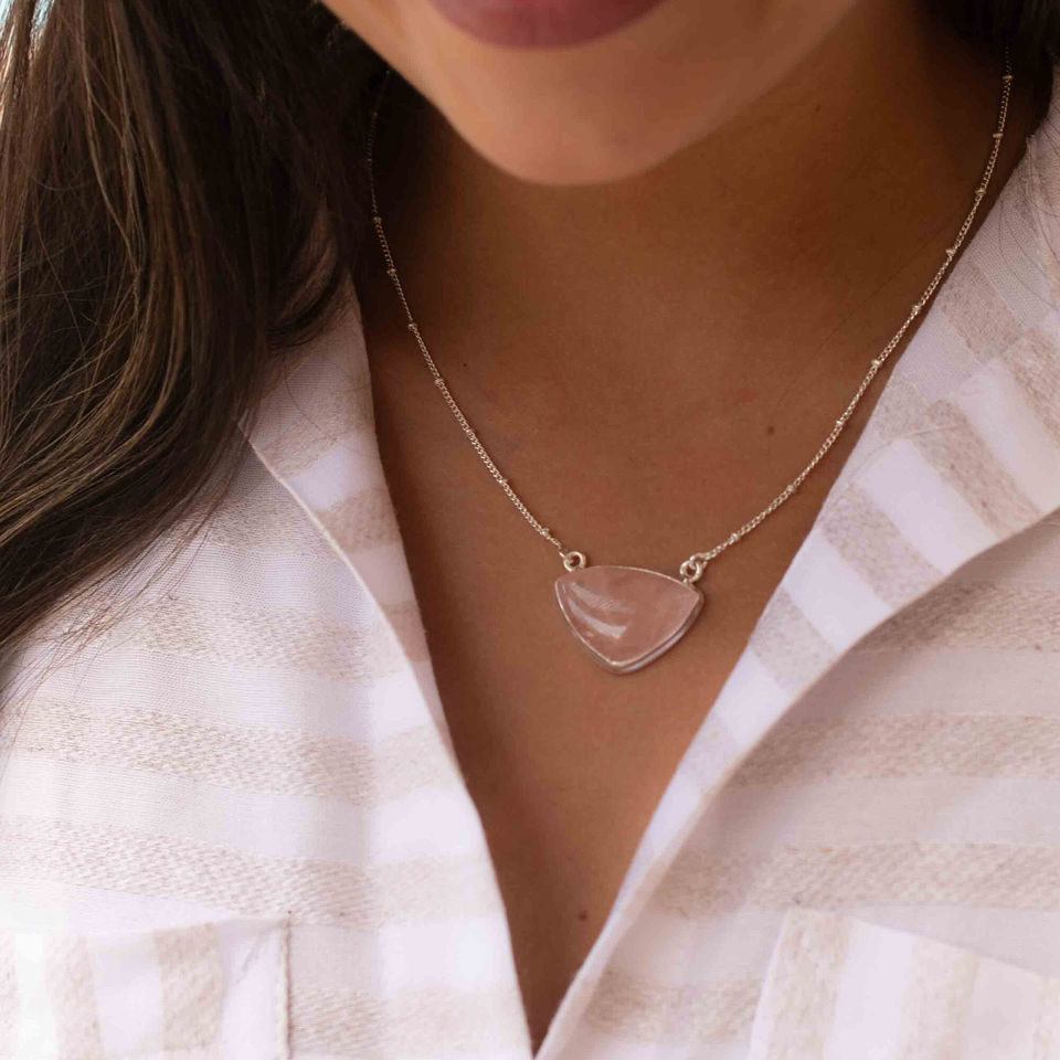 Natural Rose Quartz Trillion Semiprecious Stone Gemstone Necklace Wholesale 925 Solid Sterling Silver Jewellery Factory India