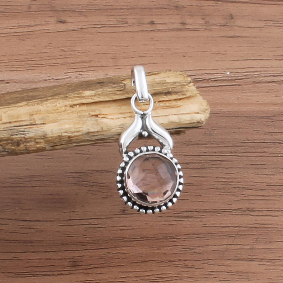 Natural Rose Quartz Vintage Platinum Plated 925 Sterling Silver Pendant Necklace Pink Crystal Heart Gemstone Charm Unisex