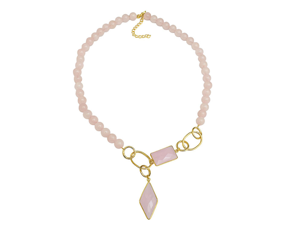 Product Name:Natural Rose Quartz And Pink Chalcedony Gemstone Necklace
