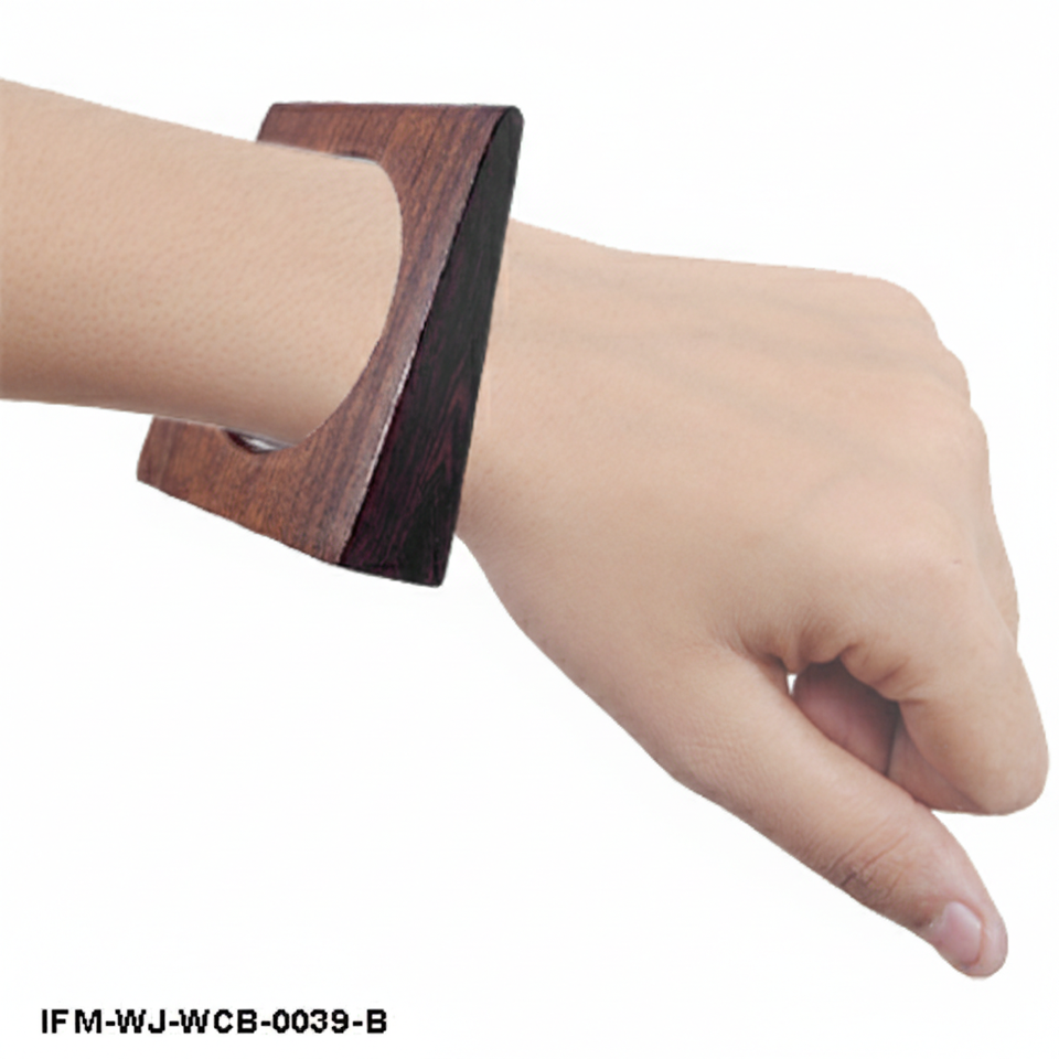 Natural Rosewood Square Bangle Minimalist Modern Geometric Wood Bracelet Bold Architectural Statement Jewelry