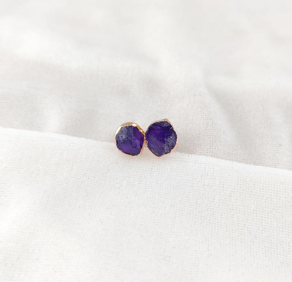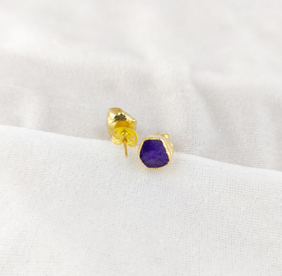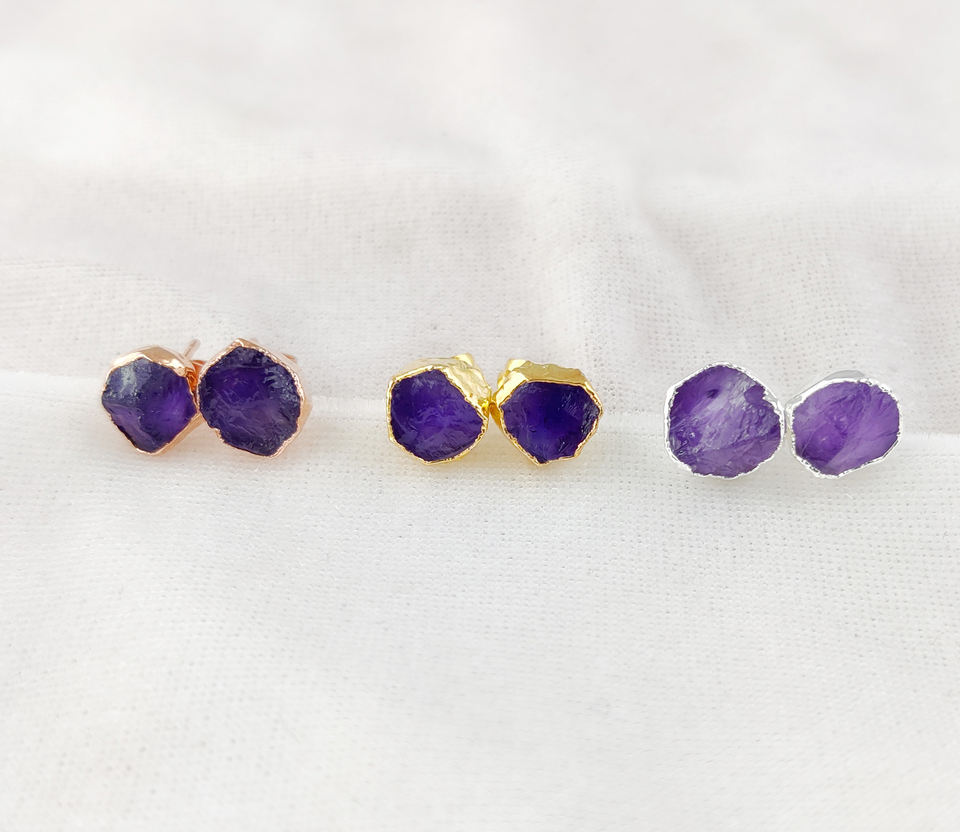 Natural Rough Amethyst 8-10mm Gold Electroplated Stud Earring February Month Healing Birthstone Amethyst Gemstone Stud Earring's