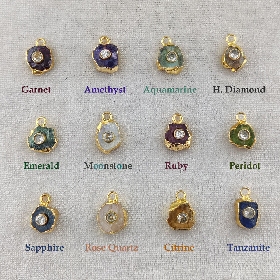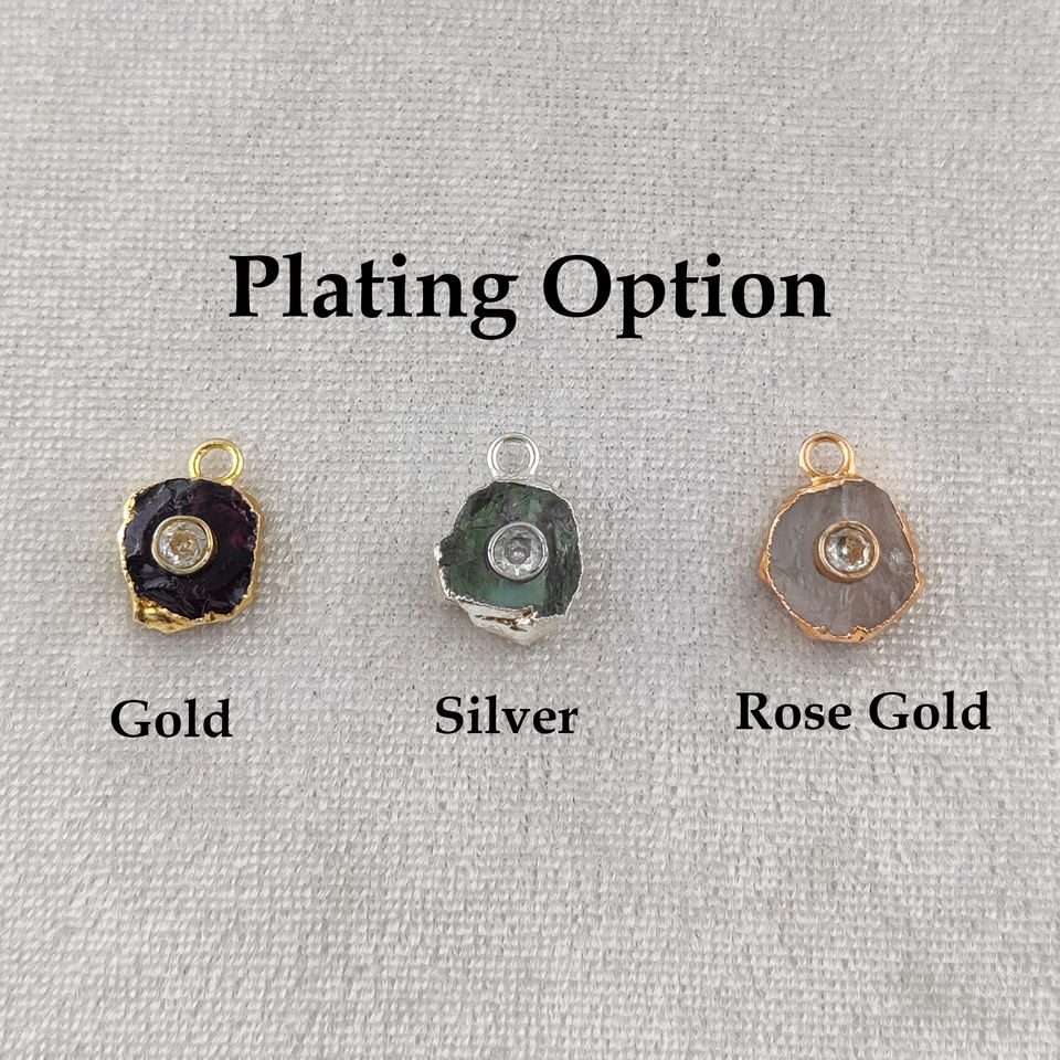Natural Rough Rose Quartz Gemstone Size 8-12mm Gold Electroplated 3mm CZ Crystal Charm Pendant October Birthstone Pendants Charm