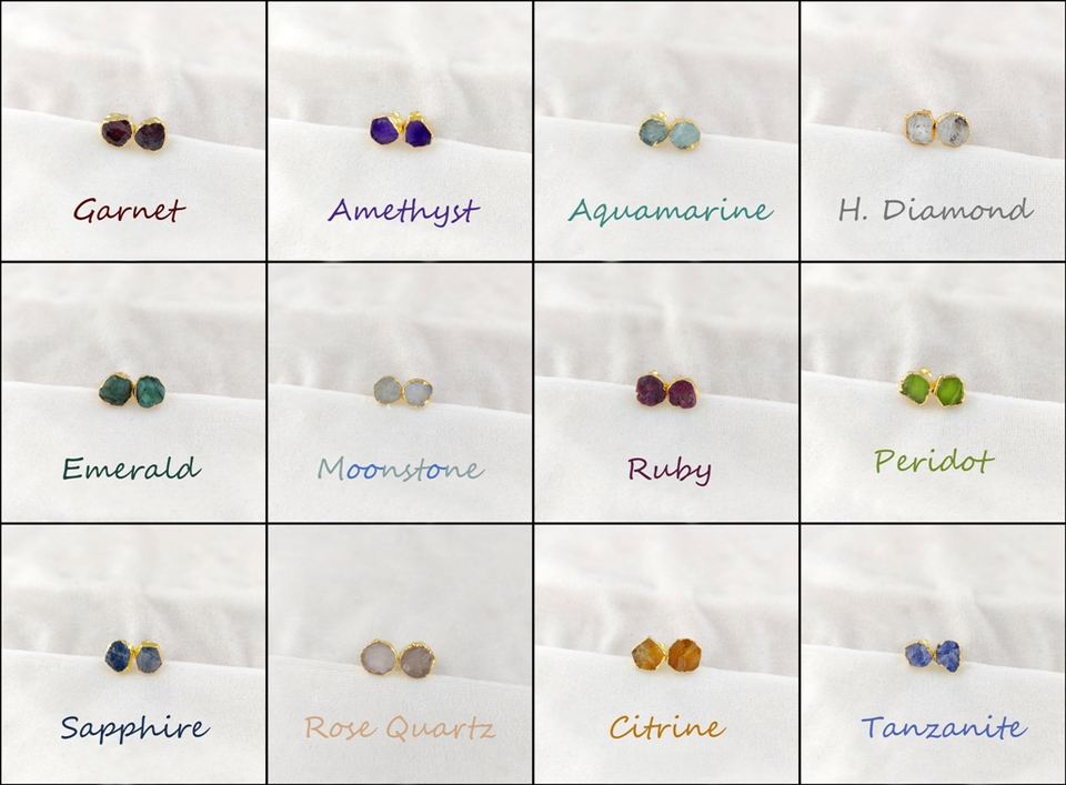 Natural Rough Rose Quartz Size 8-10mm Gold Electroplated Stud Earring October Month Healing Birthstone Rose Quartz Gemstone Stud