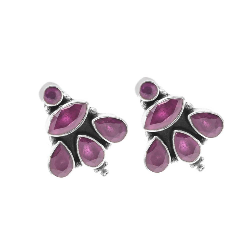 Natural Ruby 925 Sterling Silver Fine Stud Earrings Rose Gold Jewelry with Gemstone Ruby for Girls
