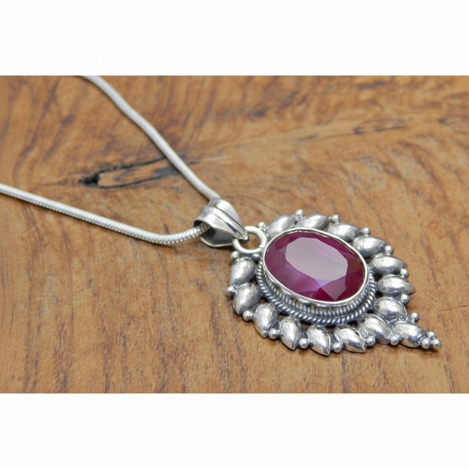 Natural Ruby Faceted 925 Sterling Silver Pendant with Snake Chain Platinum Jewelry for Women and Girls Perfect Wedding Gift