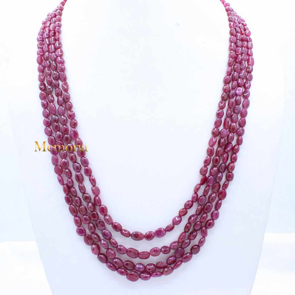 Natural Ruby Gemstone Beads 4 Layered Cabochon High Quality Gemstone Necklace Handmade Fashion Jewelry Wholesaler