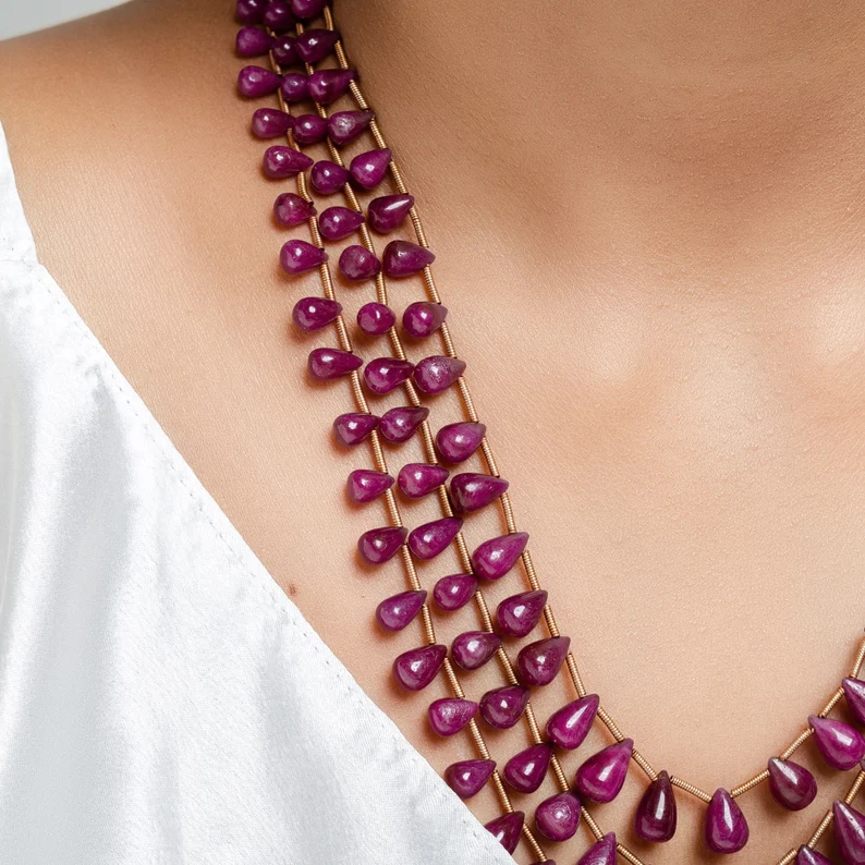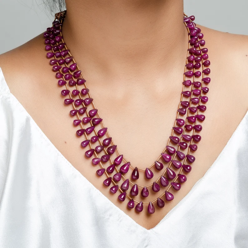Product name:Ruby Plain Drop Beads Necklace
