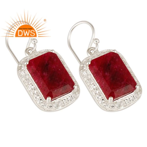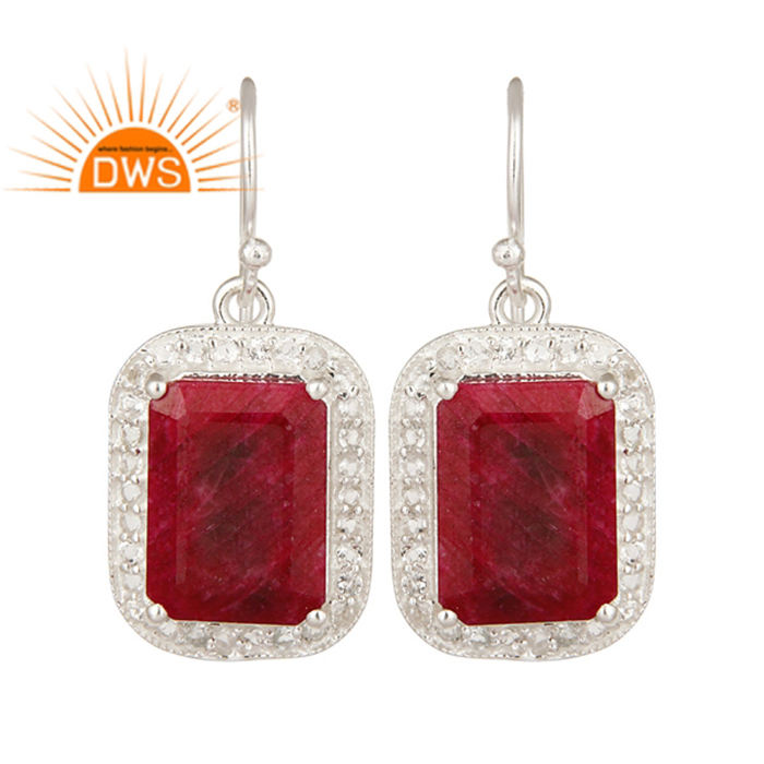 Natural Ruby Topaz Gemstone Earrings Suppliers Rectangle Design 925 Sterling Fine Silver Drop Earrings Jewelry
