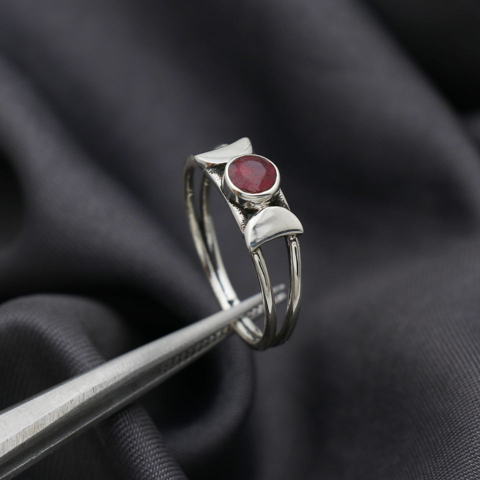 Natural Ruby Two Moon Ring 925 Sterling Silver Eternity Diamond Jewelry for Women Customizable Wedding Mascot