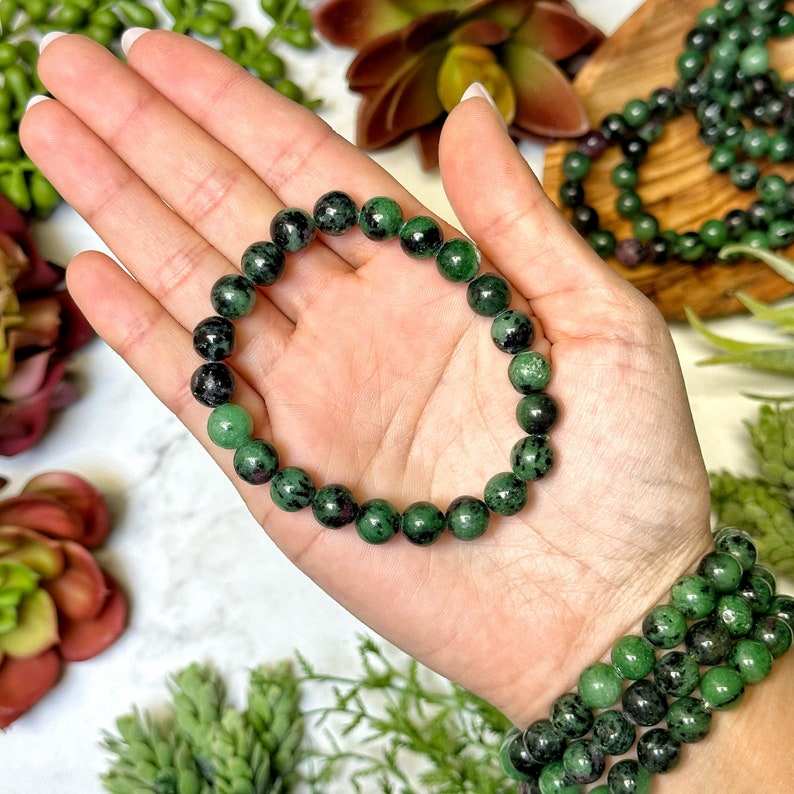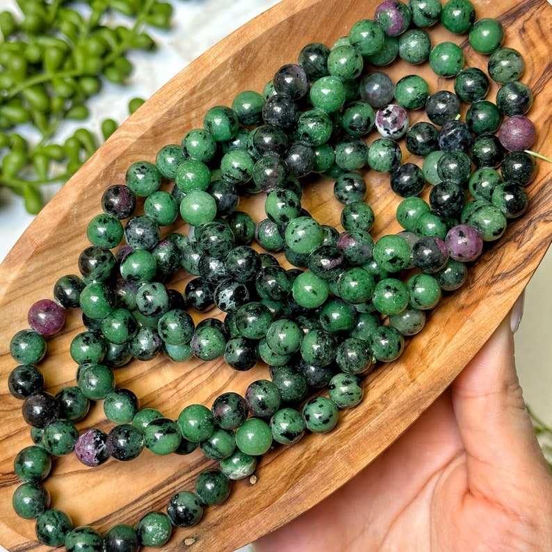 Natural Ruby Zoisite Beaded Bracelet Trendy Ball-Shaped Gemstone Emotional Balance Vitality Enhancing Engagement Wedding Gift
