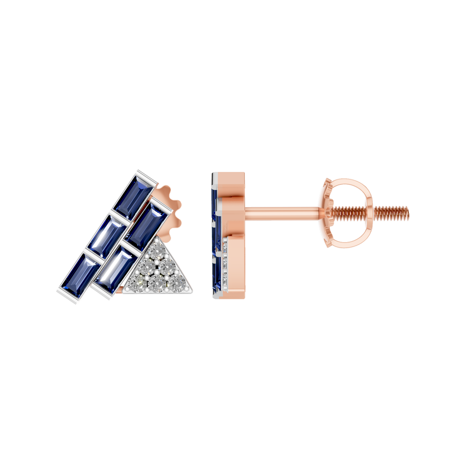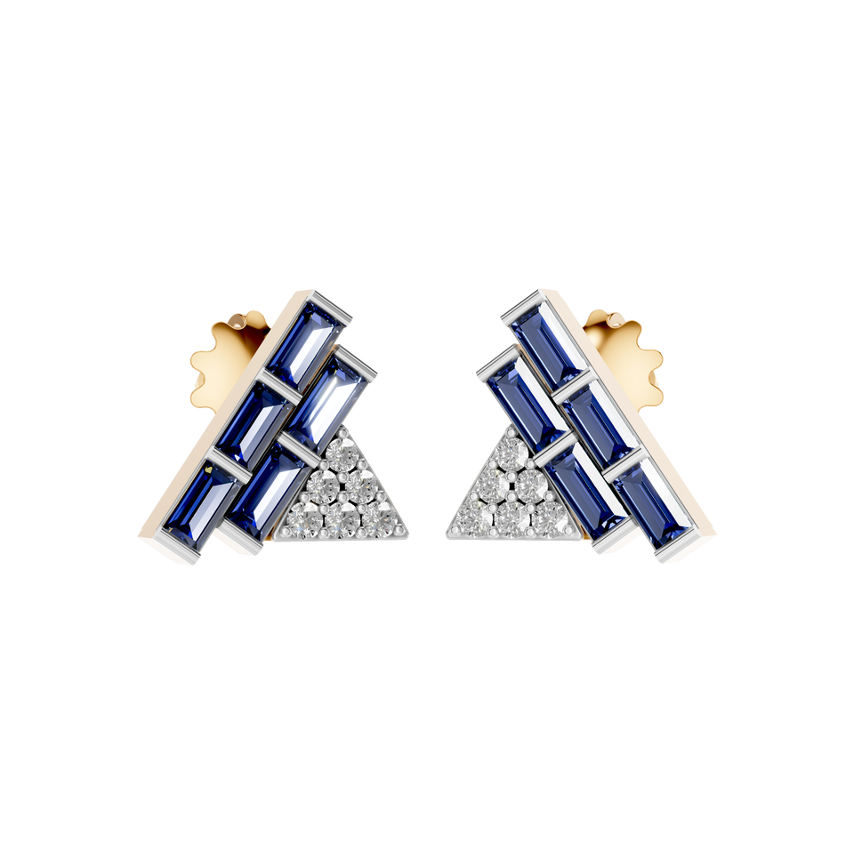 Style:Modern Geometric Sapphire Gemstone and Diamond Stud Earrings