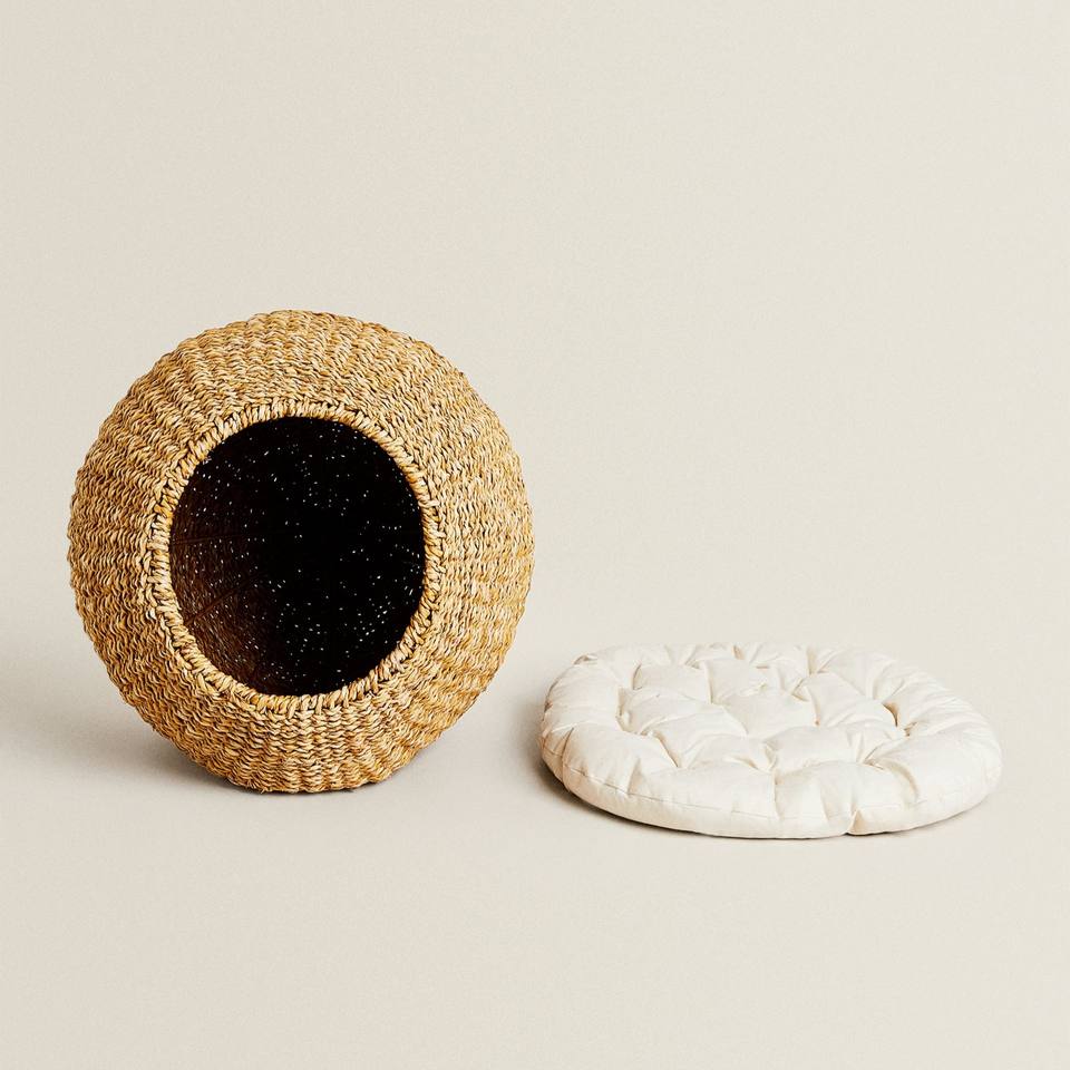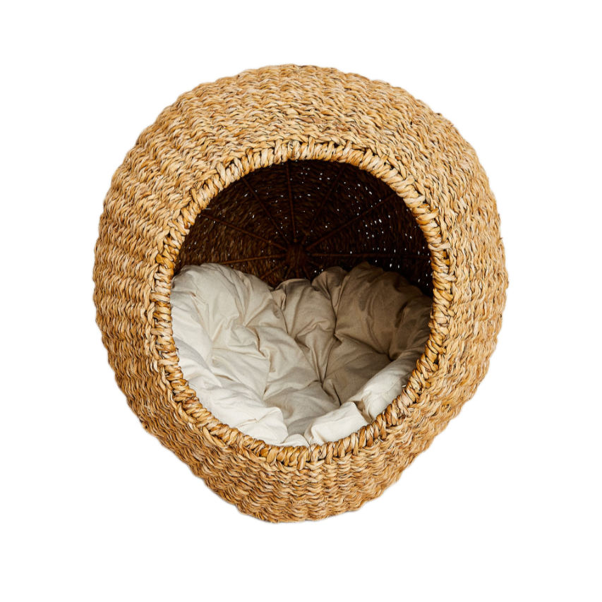 Natural Seagrass Basket Pet House Accessories Seagrass Sphere-shaped Pet Bed for Cat