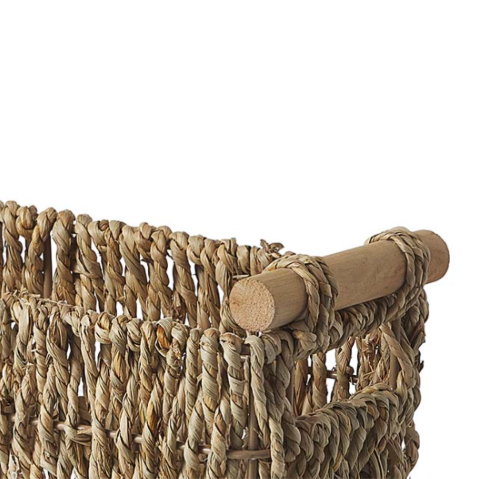 Natural Seagrass Basket Rectangular Seagrass Basket With Wooden Handle, Fruit & Vegetable Holder Kitchenware Decor From Vietnam