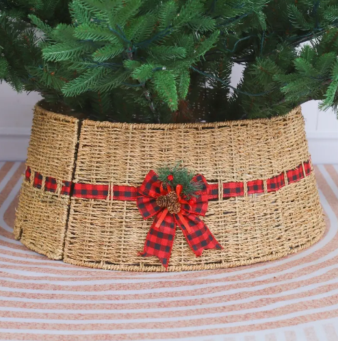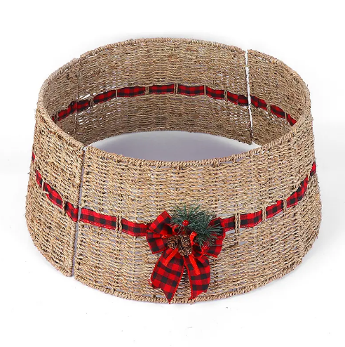 Product name:Natural Seagrass Christmas Tree Collar Skirt with Decorative Red Bow