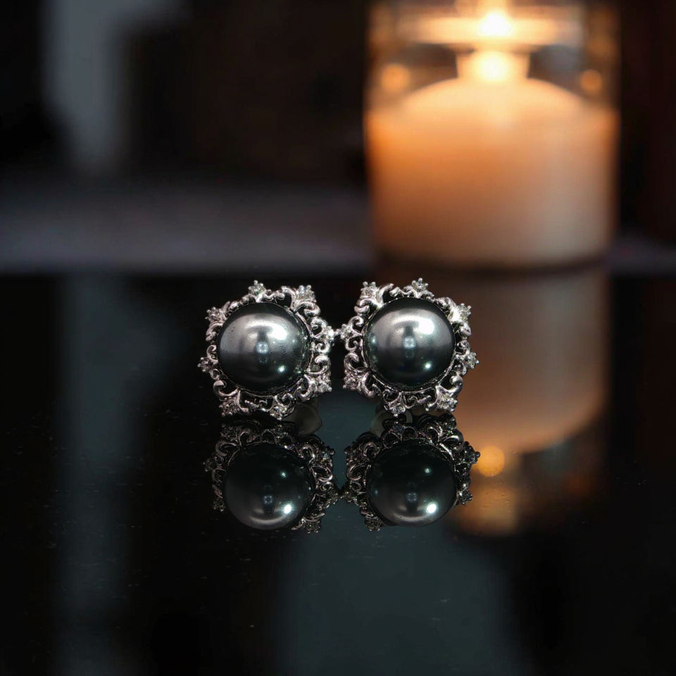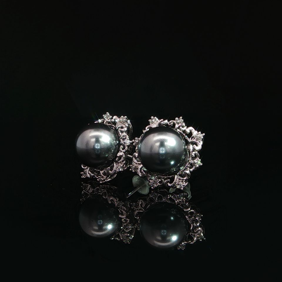 Natural Saltwater Pearl LR Stud Earrings with Platinum Lab-Grown Diamond for Women's Wedding Engagement or Anniversary Jewelry