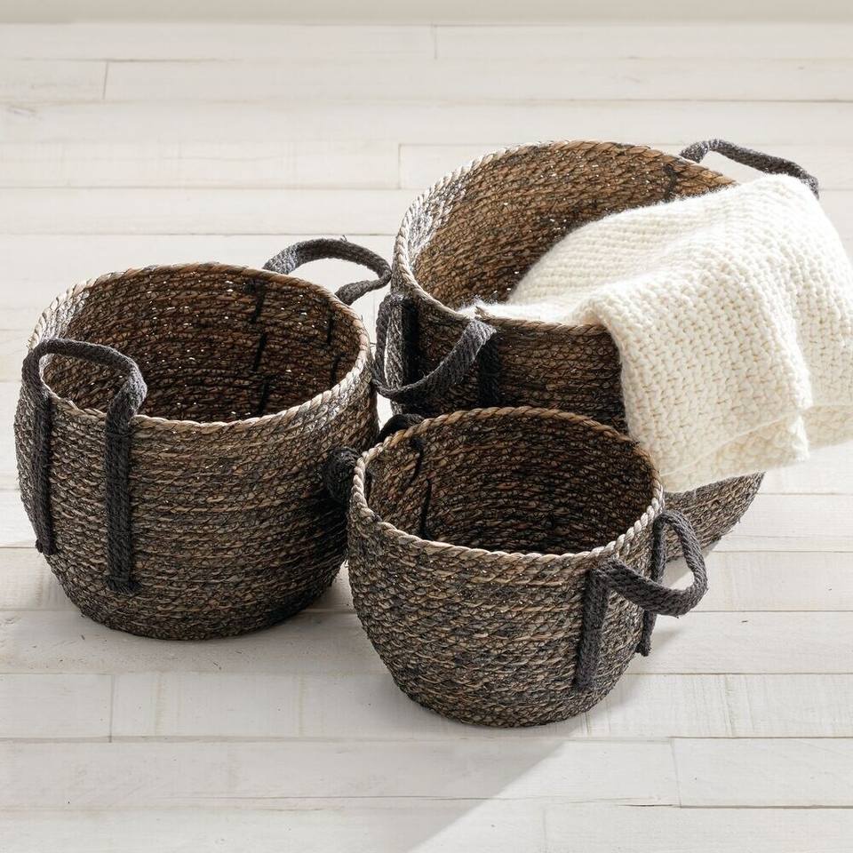 Natural Seaweed Woven Potted Rattan Plant Cover Pot Can Be Folded Kitchen Storage Basket Indoor and Outdoor