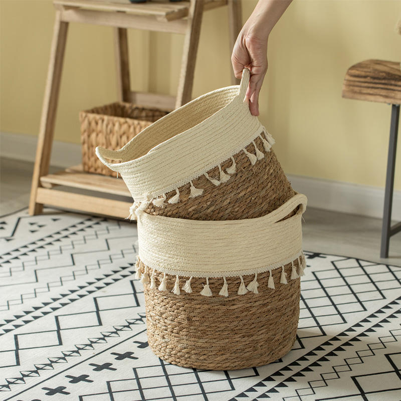 Natural Seaweed Woven Potted Rattan Plant Cover Pot Can Be Folded Kitchen Storage Basket Indoor and Outdoor