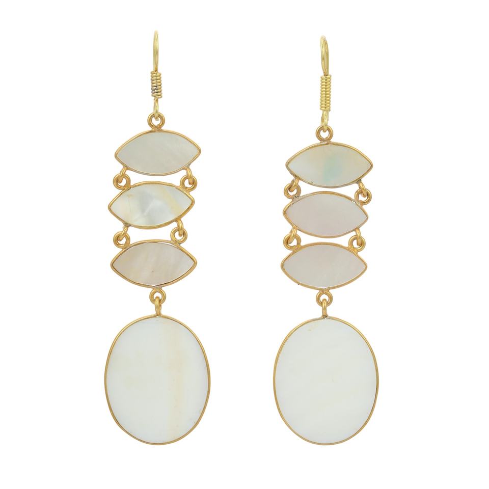 Natural Semiprecious Mother of Pearl Stone Fancy Design Lovely Shape Earring Gold Plated Long Earring for Girls and Women