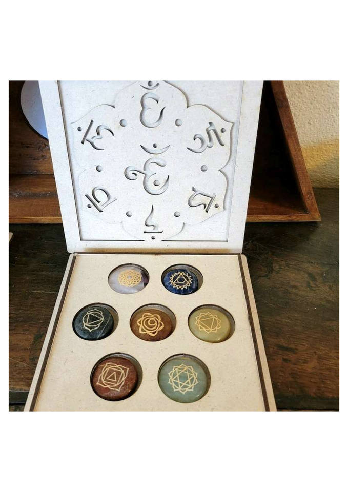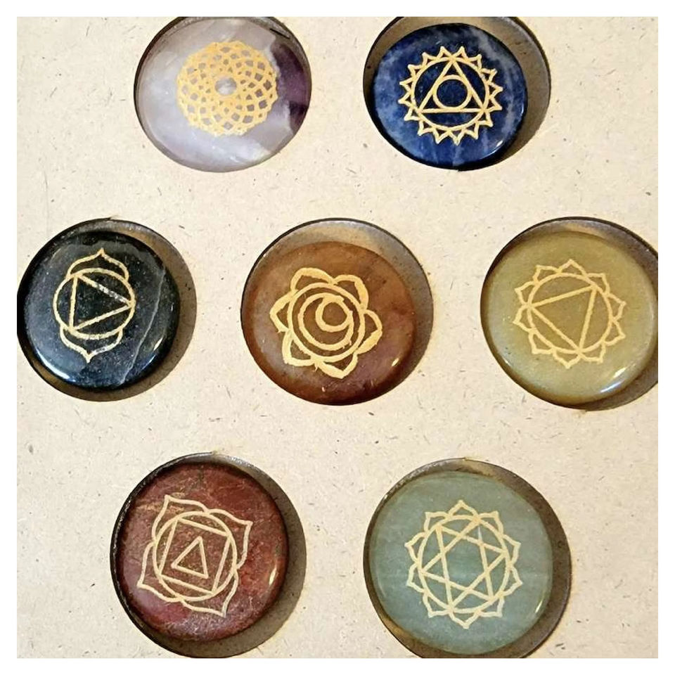 Natural Seven Chakra Round Set with Box Round Engraving Crystal Cleansing Disc Reiki Meditation Portable Home Decor