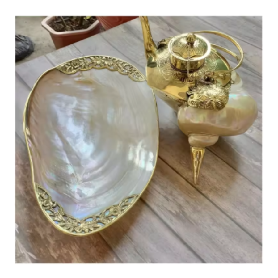 Natural Shell Handmade Tea Set, Mother of Pearl Teapot for Coastal Gift and Decoration