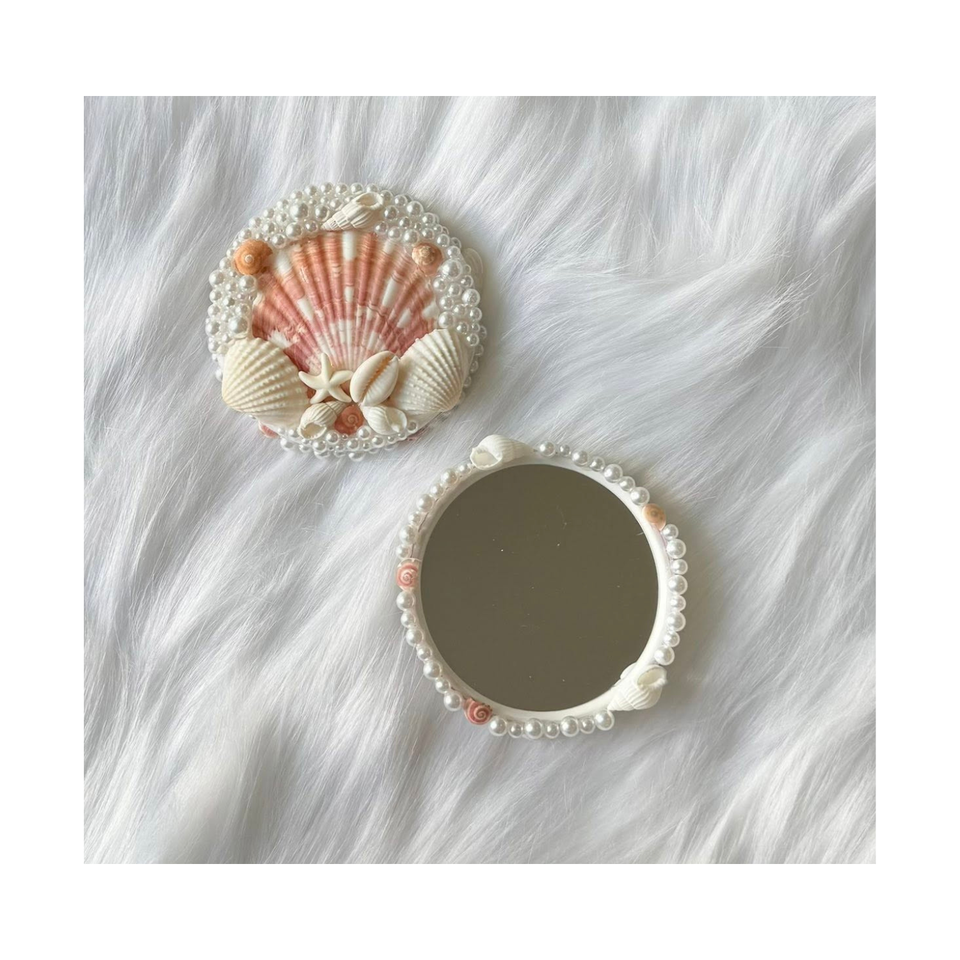 Natural Shell Mirror for Home Wall Decor, Unique Handmade Coastal Style with White, Pink, and Brown Shell Frame