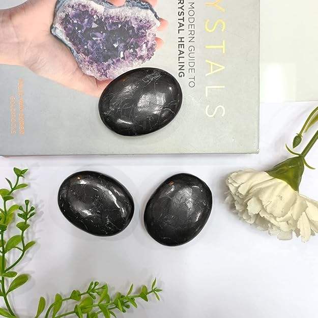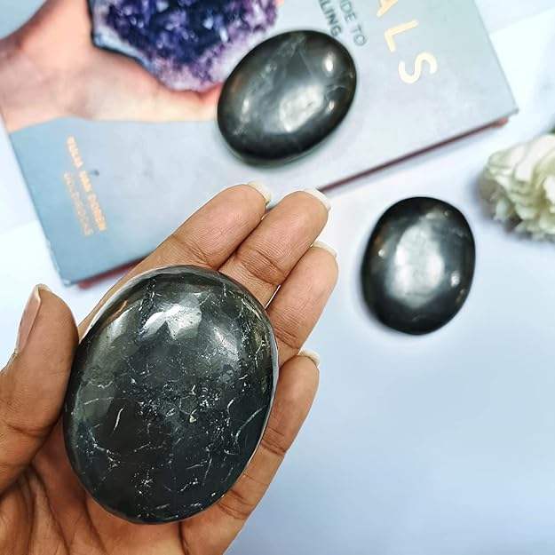 Natural Shungite Palm Stones - Hand-Polished Carbon Healing Crystals for EMF Protection - Polished Carbon Mineral for Grounding