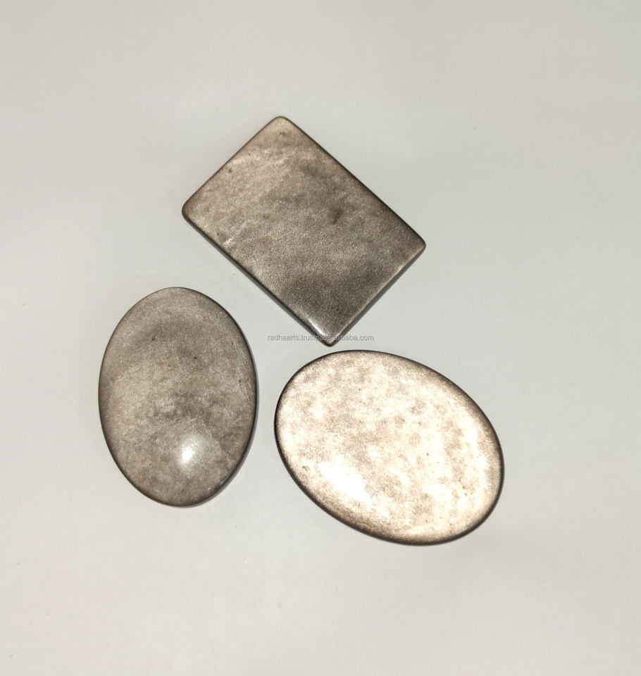 Natural Silver Obsidian Cabochon Loose Flat Back Gemstone for Jewelry Making Handmade