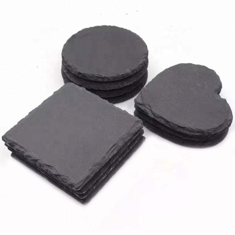Natural Slate Coasters Set - Round, Square & Heart-Shaped Stone Drink Coasters with Engraved Designs, Heat-Resistant for Home &