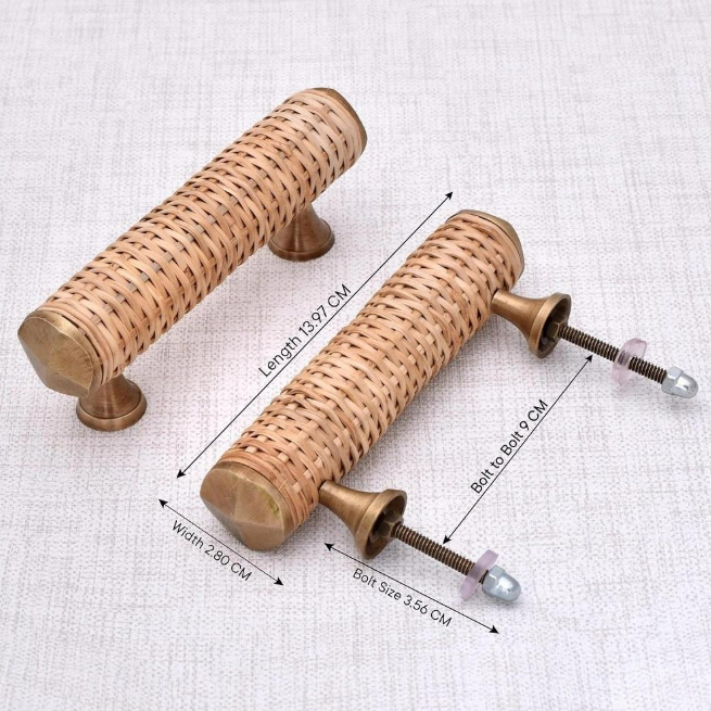 Handcrafted Rattan Door Handle Coastal Style Pull for Cabinets Drawers & Interior Doors Natural Woven Cane Hardware for Rustic