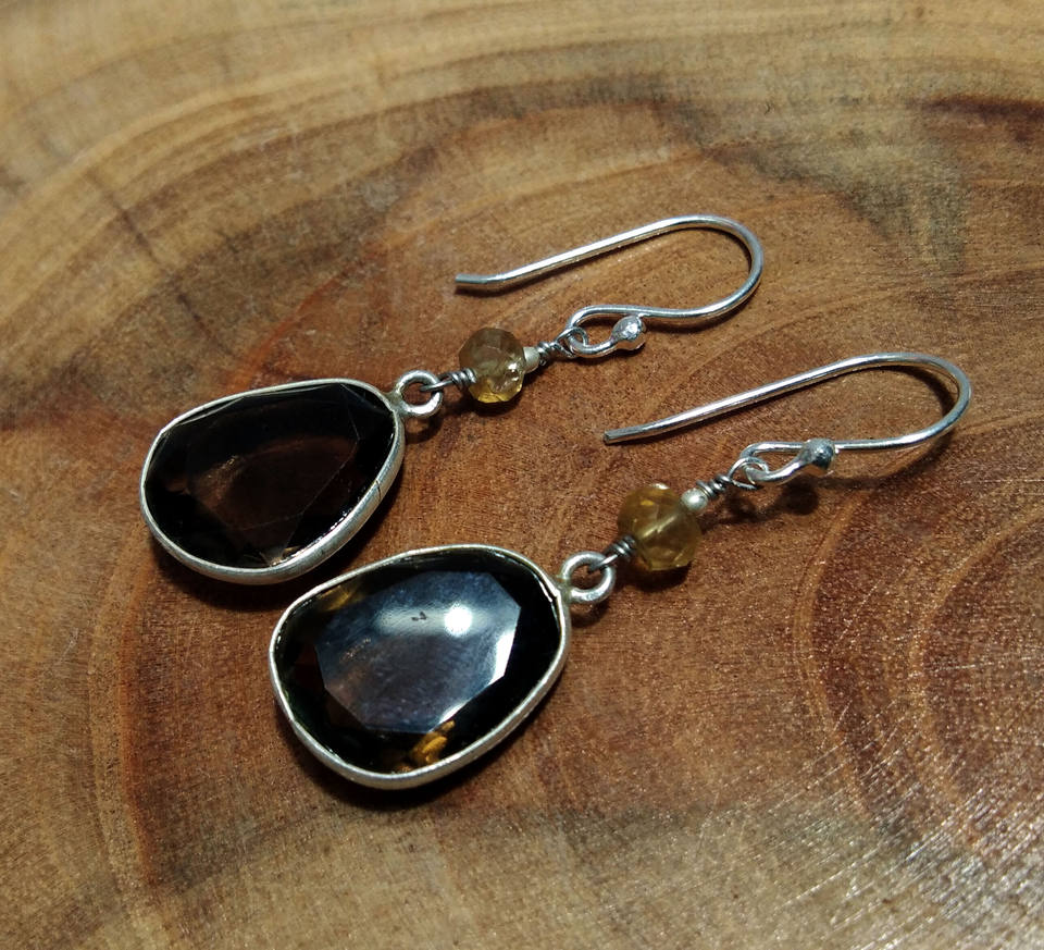 Natural Smoky Quartz & Citrin 925 Sterling Silver Bezel Handmade Set Drop Earrings for Women Romantic Style Party & Wedding Wear