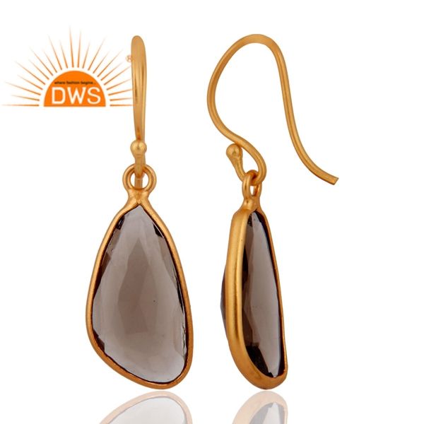 Natural Smoky Quartz Earrings 18k Gold Plated Jewelry Designer 925 Silver Hook Earrings Wholesale Classic Collection