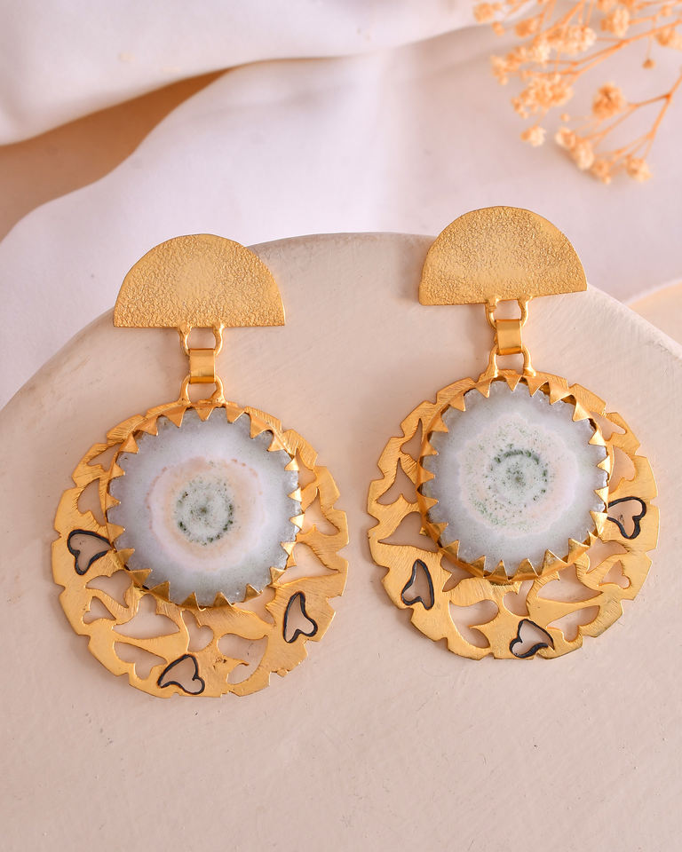 Natural Solar Druzy Gemstone Earrings For Women Jewelry Gold Plated Stud Pairs New Collections At Factory Price