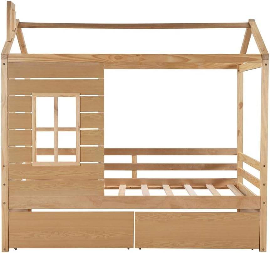 Natural Solid Wood Platform Bed Frame Durable Slats Full Size-No Box Spring Needed Kid-Friendly Bedside-Shelves