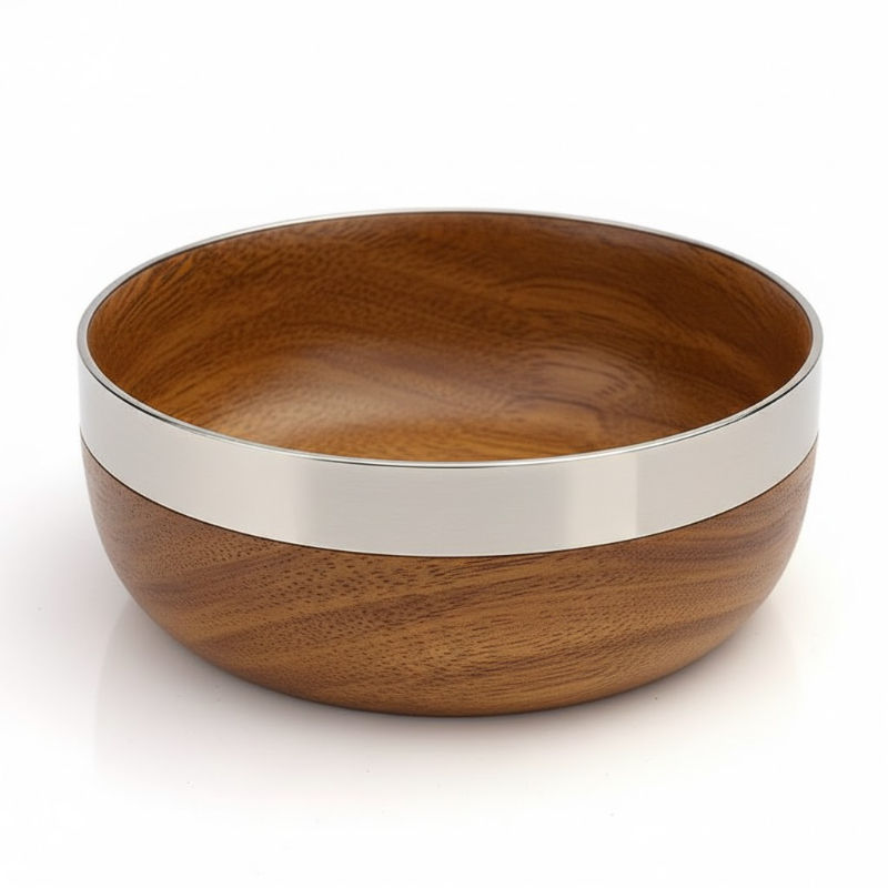 Natural Solid Wood Serving Bowls With Metal Handle Fruit Salad Noodle Soup Bowls Decorative Kitchen Dining Tableware Bowls