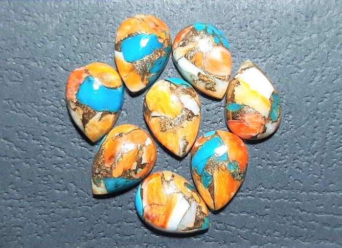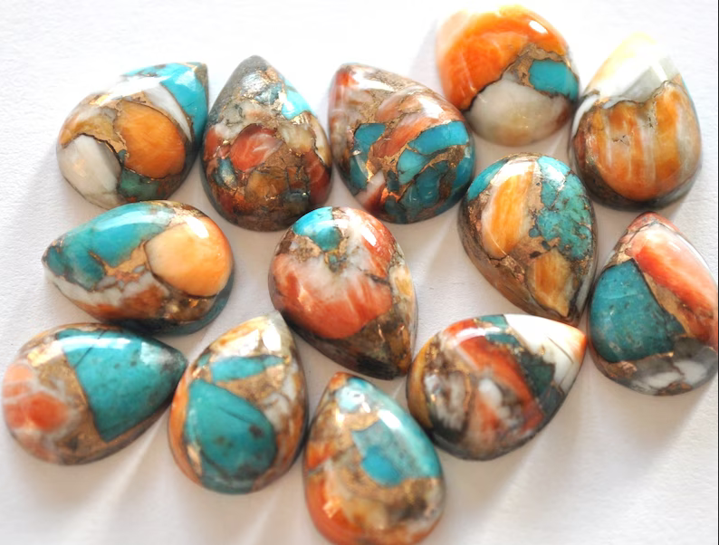 Natural Spiny Oyster Copper Turquoise Pear Shape Smooth Cabochon for Jewelry Making in All Sizes Create Gemstone Rings Necklace