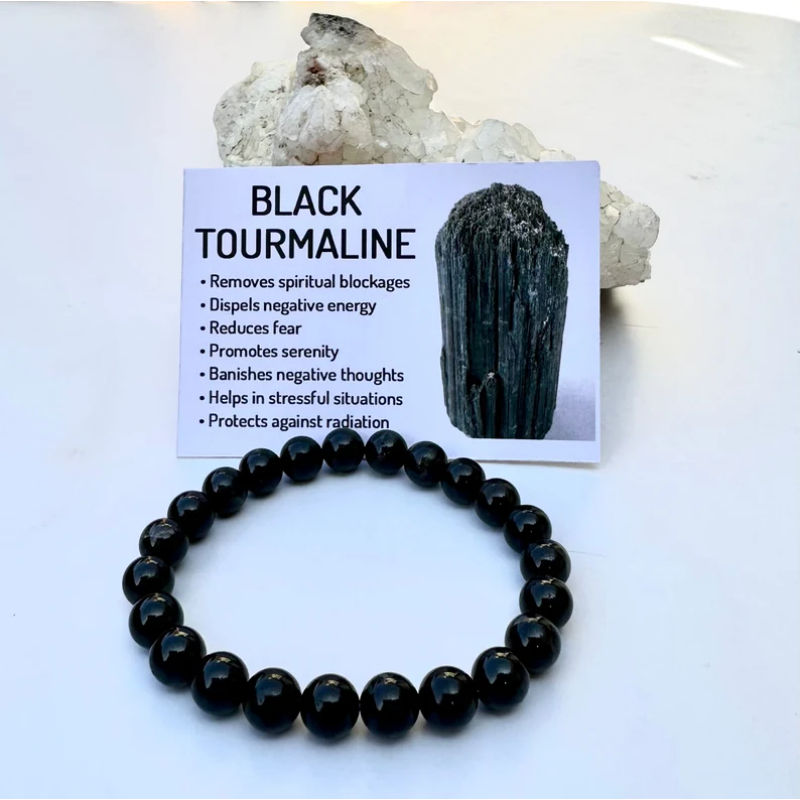 Unisex 8mm Natural Grade A++ Black Tourmaline Crystal Bead Bracelet Spiritual Lucky Stones Fashion Jewelry with Trendy Style