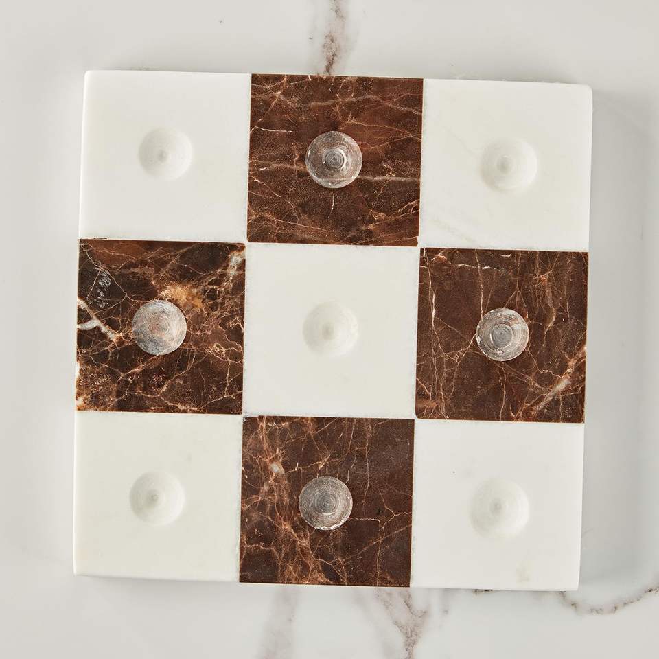 Natural Square Marble Tic-Tac-Toe Board White Luxury Game Set for Home Decor, Tabletop, and Gift Decoration Board for Office.