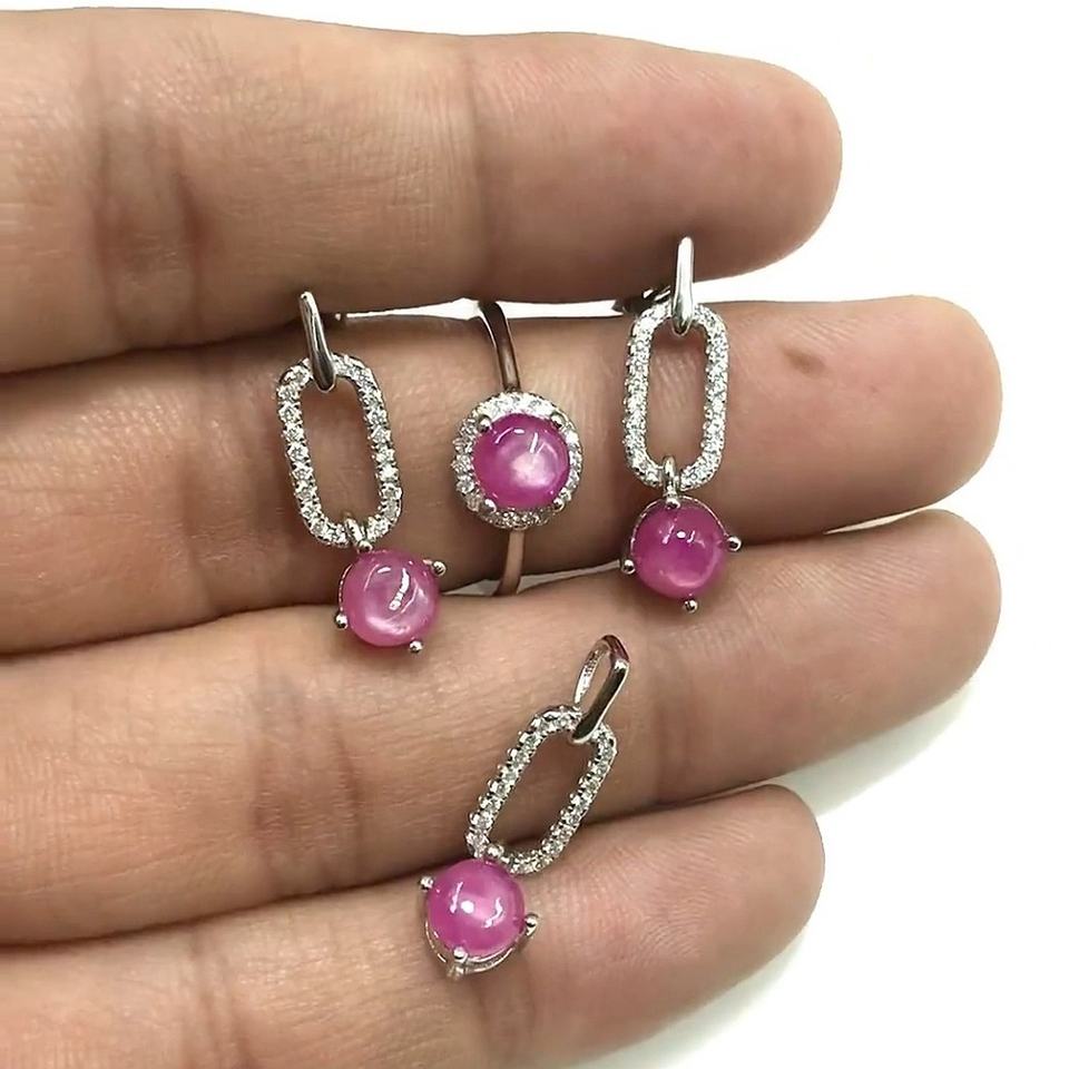 Natural Star Ruby CZ 925 Sterling Silver Round Cut Gemstone Jewelry Set for Women 6mm Stone Size Wedding Party Gift Direct India