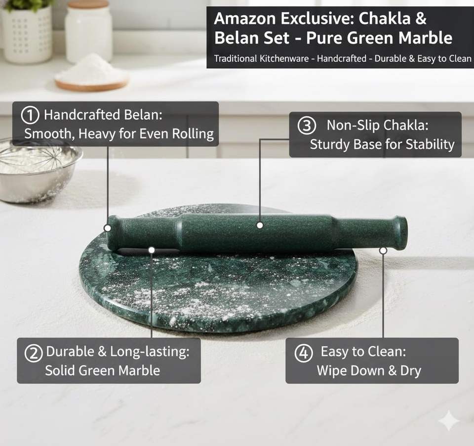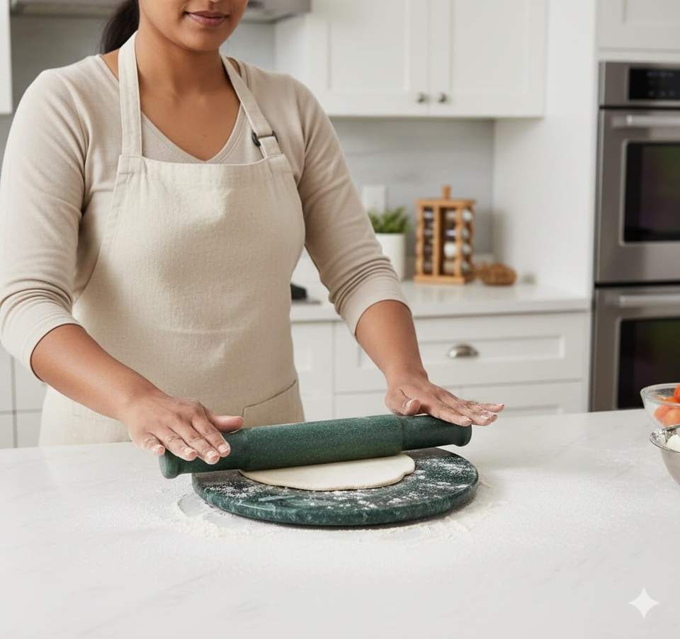 Natural Stone Marble Rolling Board Belan Brown Heavy Non-Porous Surface Eco-Friendly Floral Pattern Kitchen Tools Roti