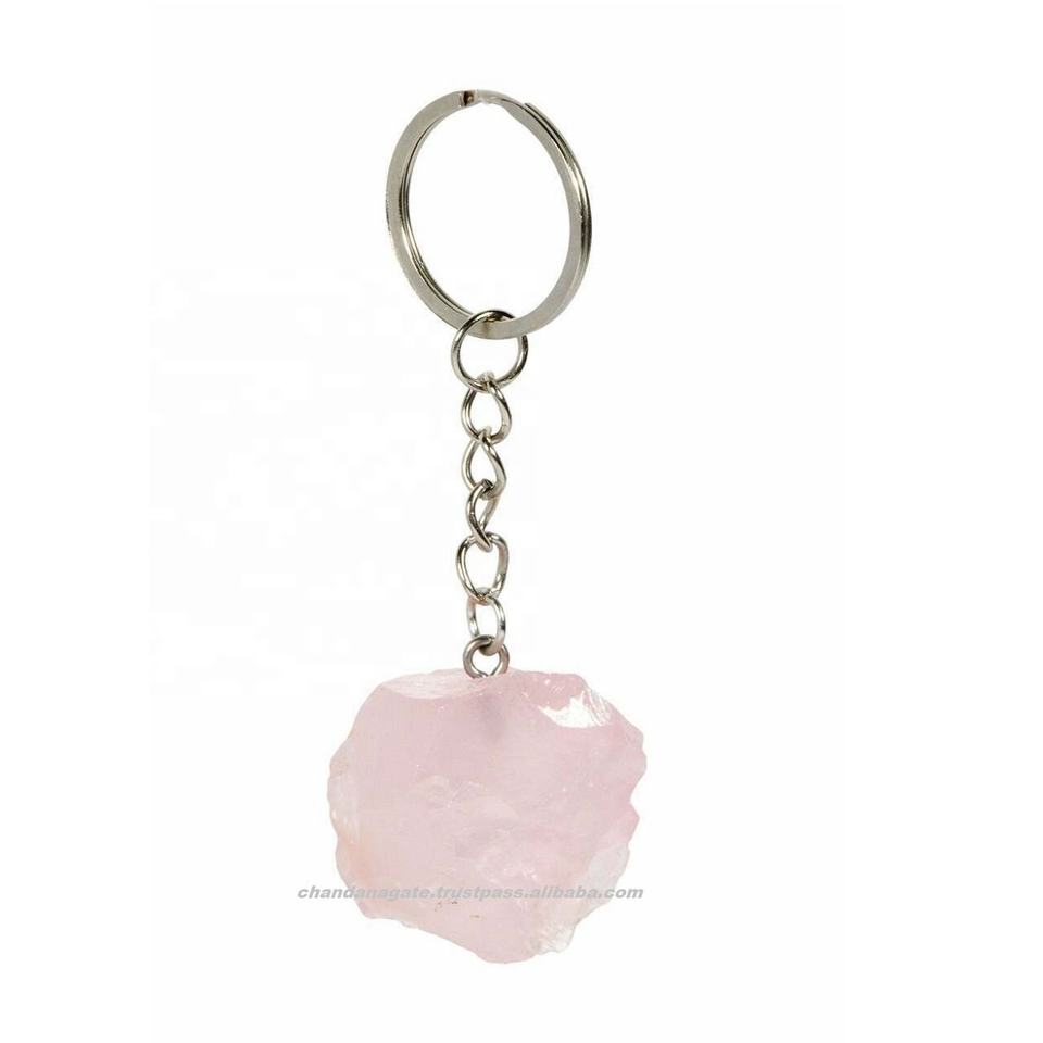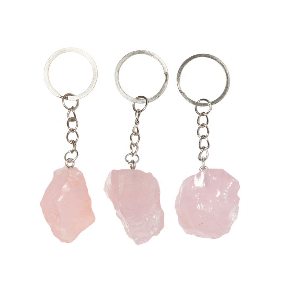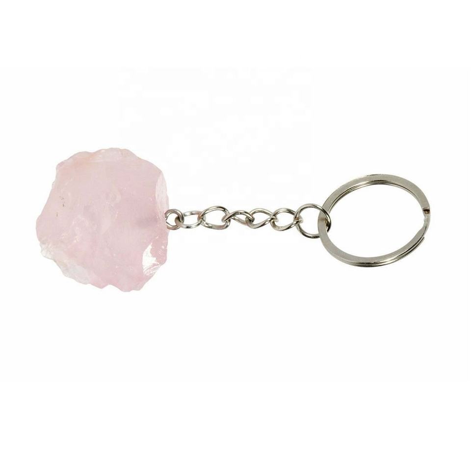 Natural Stone Raw Crystals Rose Quartz Healing Stones Keychain Custom Rough Gemstone Crystal Keychain Healing Wholesaler Supply