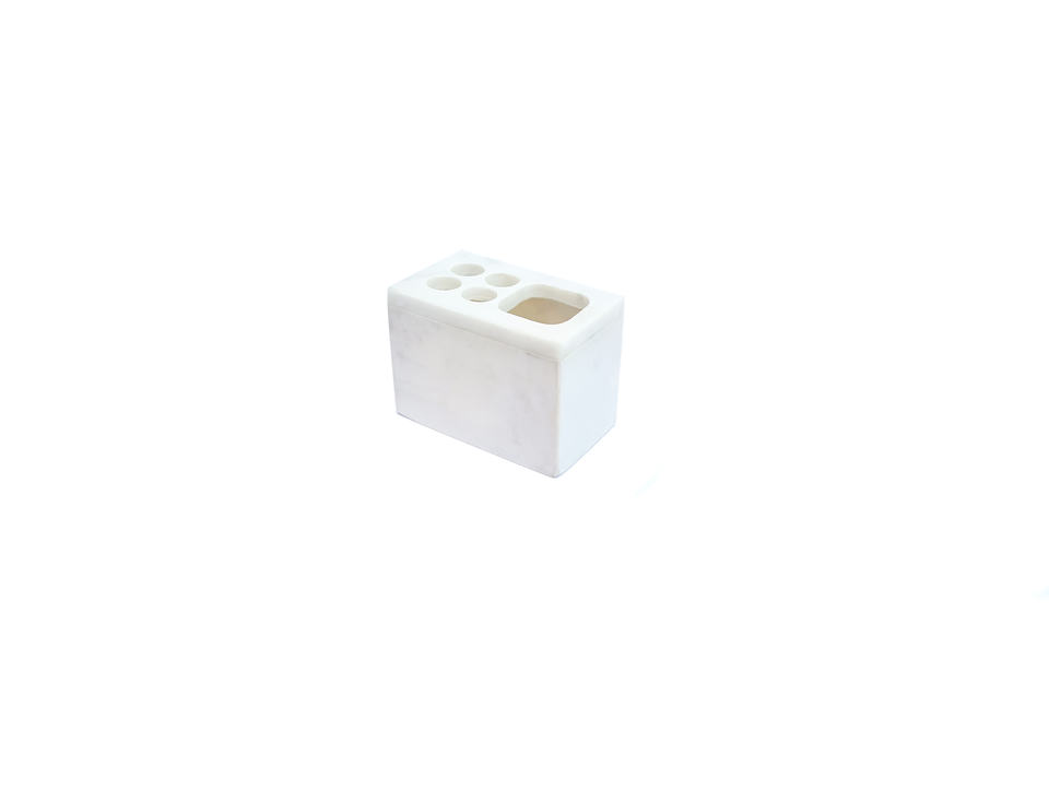 Natural Stone White Marble Tumbler Bathroom Set Bath Accessories Tooth Brush Multipurpose Holder Square Rectangle Shape Custom