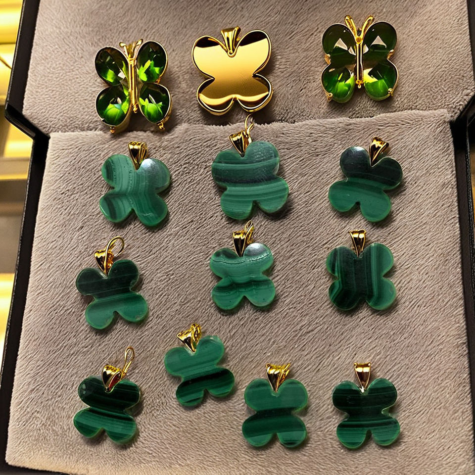 Natural Stone White Shell Green Malachite Red Agate Black Onyx Lapis Lazuli Clover Pendant for Necklace Bracelet IGI Certified