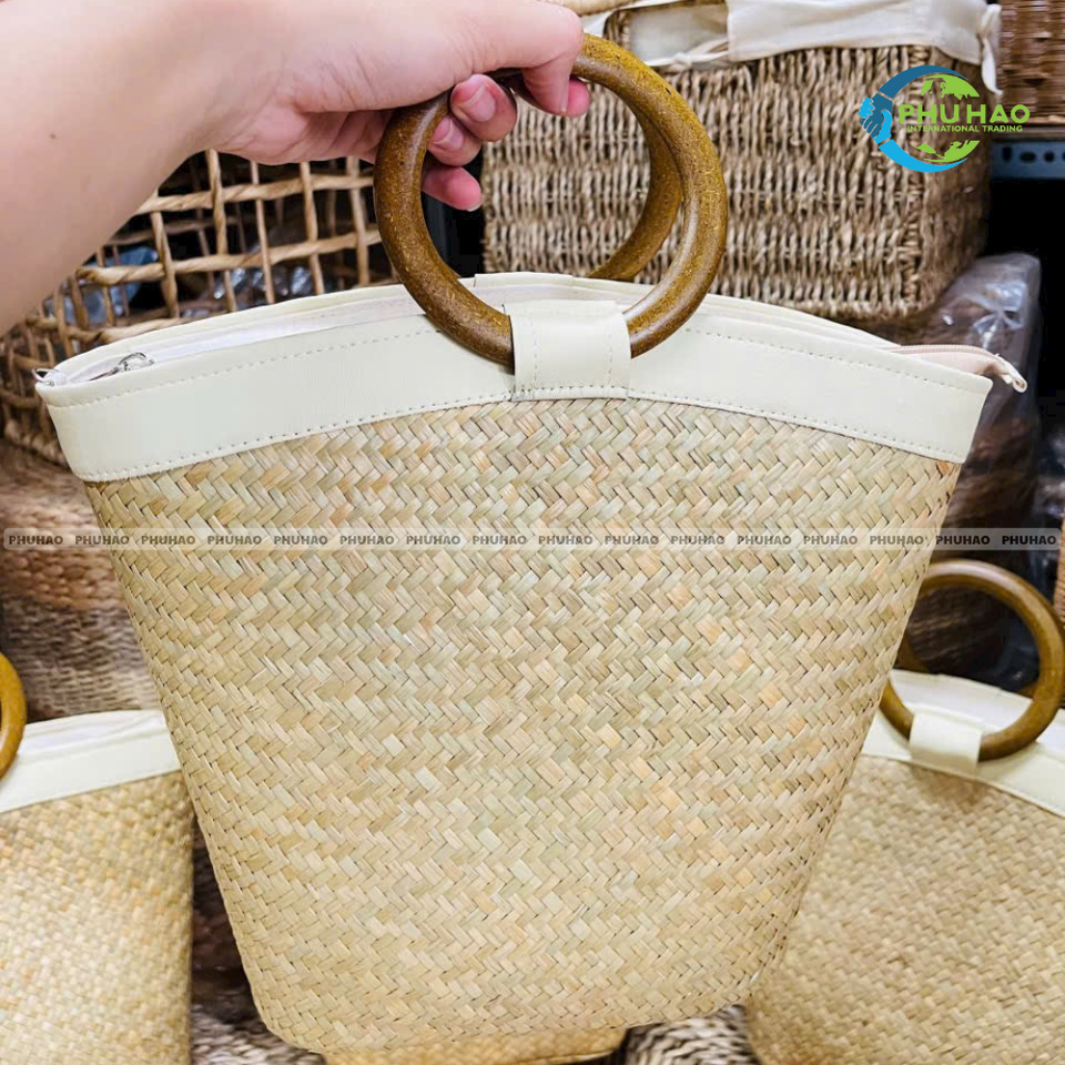 Natural Straw Bag From Vietnam SEAGRASS HANDBAG With Bow Handwoven and Personalized Valentine's Day Gift Baskets