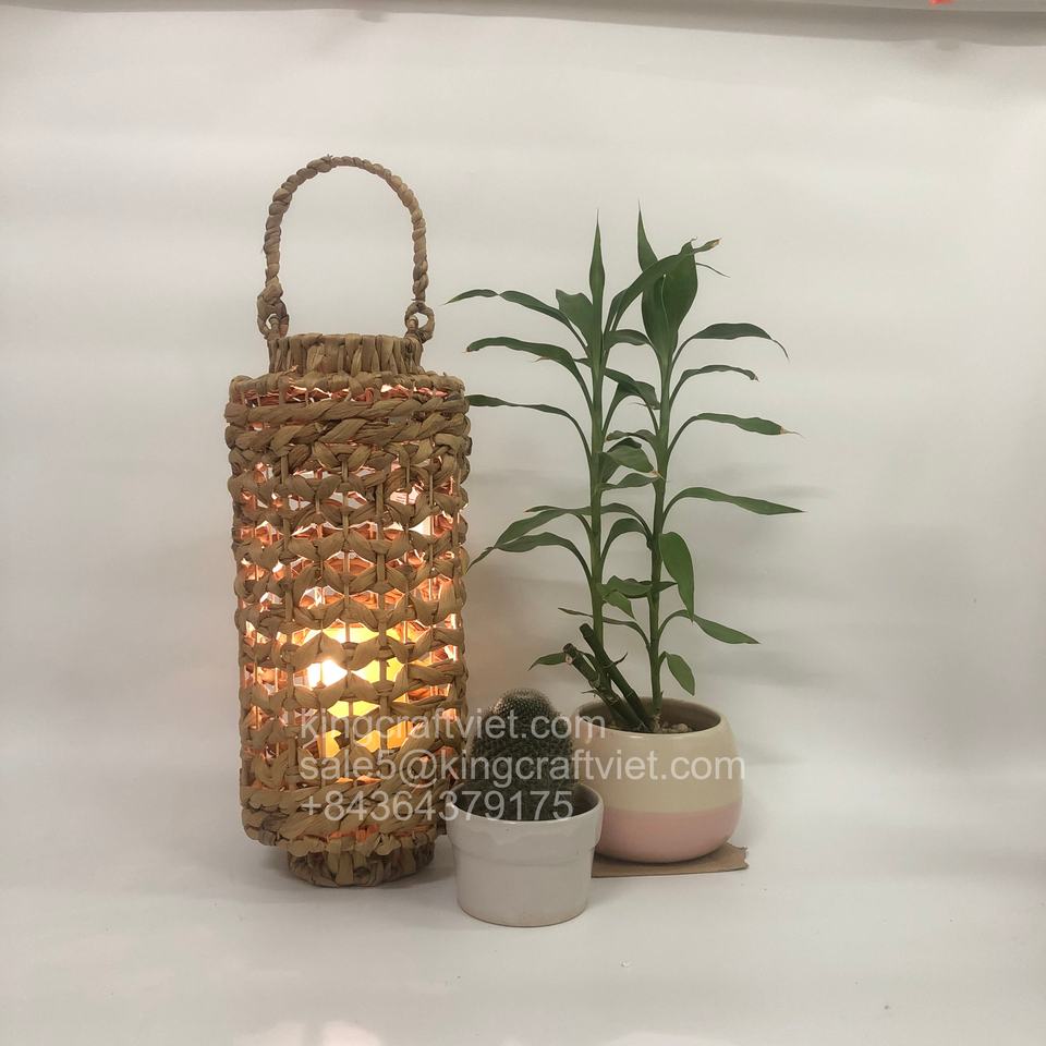 Natural Straw Water Hyacinth Lantern Woven Lantern Candle Holder for Decoration Hanging Candle Holder Made by Vietnam