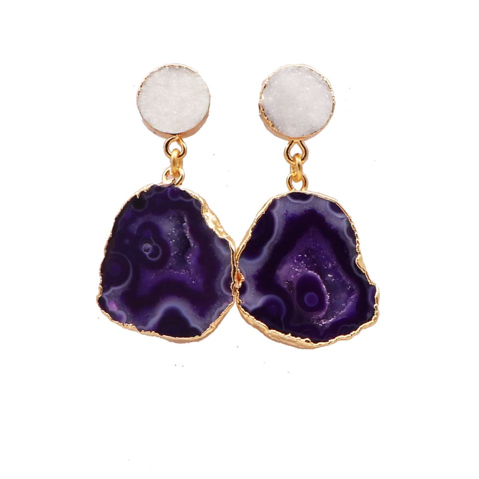 Natural Sugar Druzy & Agate Geode Druzy Gems Stud Earrings Gold Plated Jewelry Party Wear Stylish Earring Push Back Studs Pairs