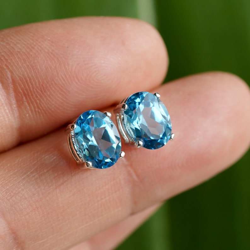 Blue Topaz Stud Earrings With Sparkling Dangle Gemstone Jewelry