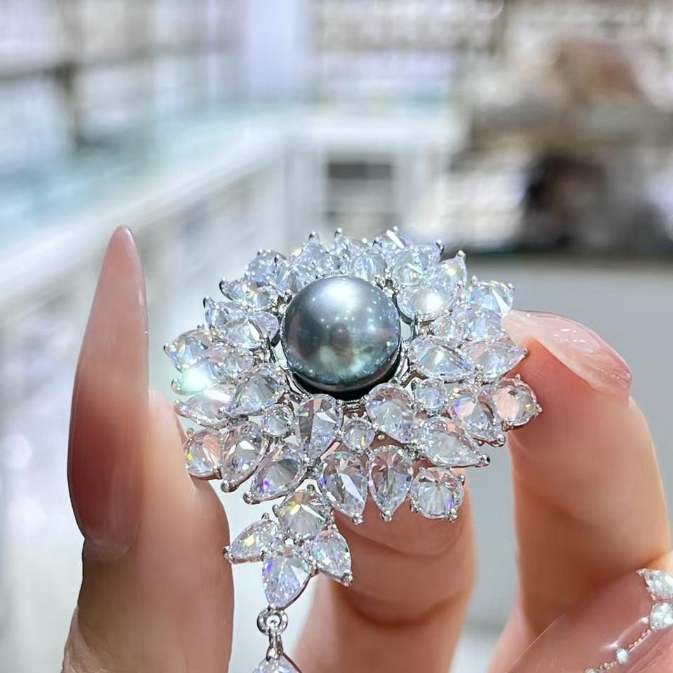 Natural Tahitian Sea Water Pearl Full-Brilliance Flower Chest Pendant Brooch Feminine Elegance and Noble Pin Fine Brooches